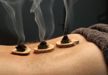 Combinação poderosa para alívio profundo. Técnica milenar com ação anti-inflamatória e circulatória.